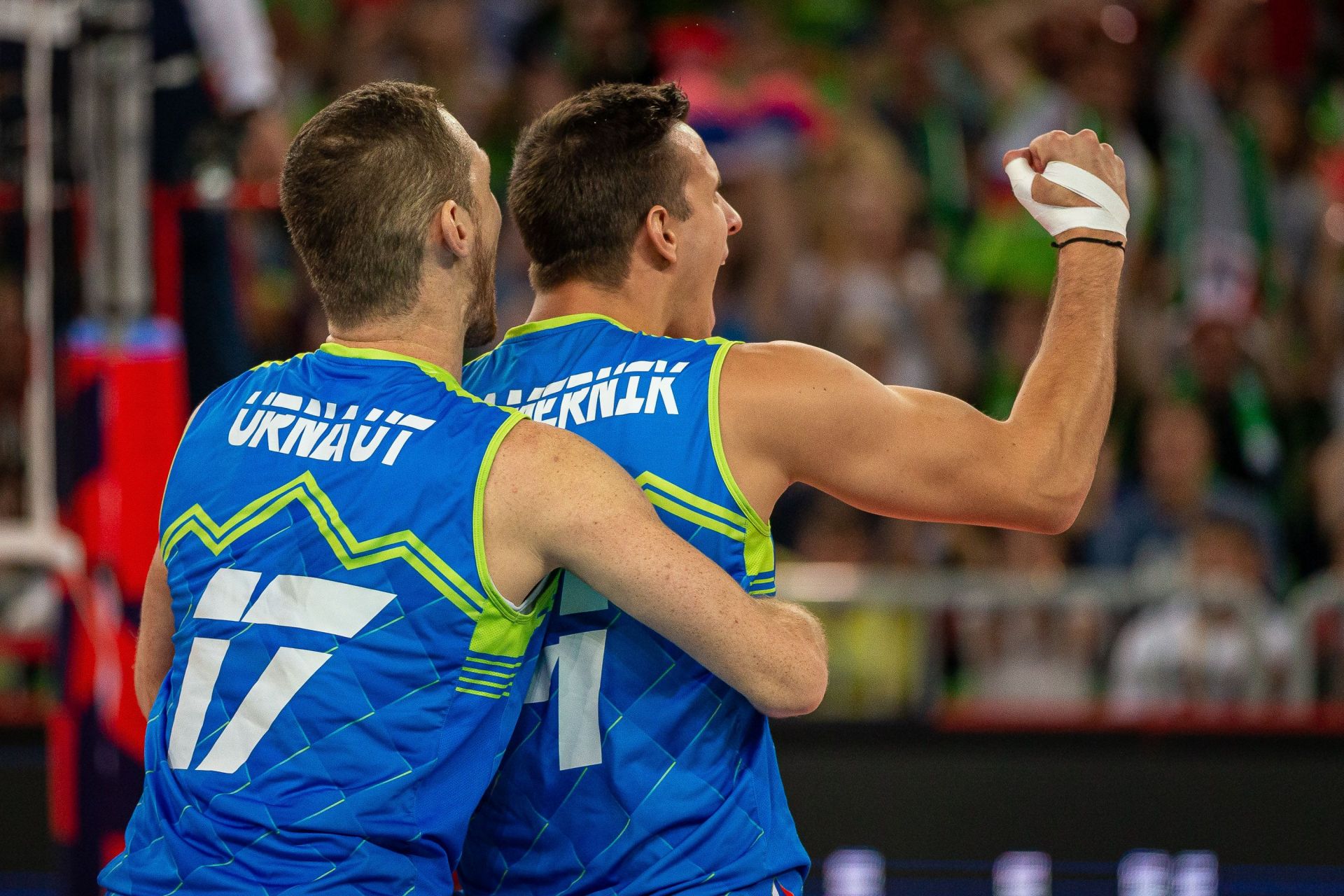 Tine Urnaut, kapetan Slovenije: »Po izgubljenem nizu smo še boljše odigrali v vseh naslednjih in s tem dokazali, da se borimo od prve do zadnje točke ter smo suvereno zmagali. Dvignila nas je serija, ki smo jo naredili na začetnem udarcu. Sokolova, njihovega glavnega napadalca, smo dobro zaustavili in jim tako porezali noge in naredili razliko v točkah. Vsak niz se je odvil na nek podoben način in smo jih mirno odigrali do konca. Vedeli smo, da jih lahko premagamo, čeprav jih nismo še nikoli. S takšno podporo s tribun smo dobili dodatno energijo, da smo lahko zmagali. Malo sem imel temperature dva dni, ampak ne glede na to smo se dogovorili, da ko stopimo na igrišče, pustimo srce na igrišču, vsak nekaj žrtvuje za ekipo in vse bomo naredili, da se naše prvenstvo ne konča proti Rusiji.«