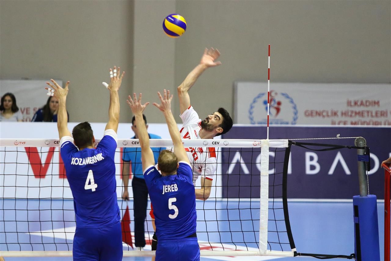 Slovenski odbojkarji so obračun s Turki začeli izjemno motivirano. Z dobrimi začetnimi udarci Detele in Šterna so tekmece oddaljili od mreže, v obrambi je dobro igral Toman, ob mreži je bil neustavljiv Kozamernik. Domači selektor Nedim Özbey je pri zaostanku s 3:7 posegel po prekinitvi, a je po zaslugi Štalekarja prednost še narasla (5:11). Turki so z dobrimi začetnimi udarci Merta Matica, Murata Yenipazarja in Baturalpa Güngürja povzročili velike probleme našim sprejemalcem, izničili prednost ter se prebili v ospredje. Miklavc je poizkušal z menjavo Klobučar-Jure Okroglič in s prekinitvijo, a so domači vseeno povedli z 19:14. Slovenski strateg je v igro vrnil Klobučarja, Kozamernik na mreži in Detela na začetnem udarcu sta naše pripeljala do 24:22, nato pa so domači izkoristili četrto zaključno žogo.
