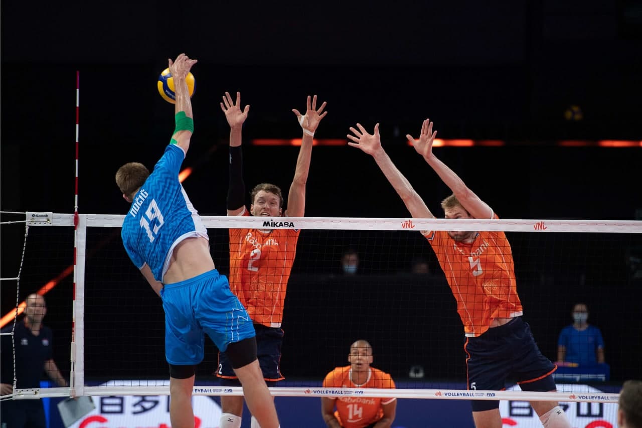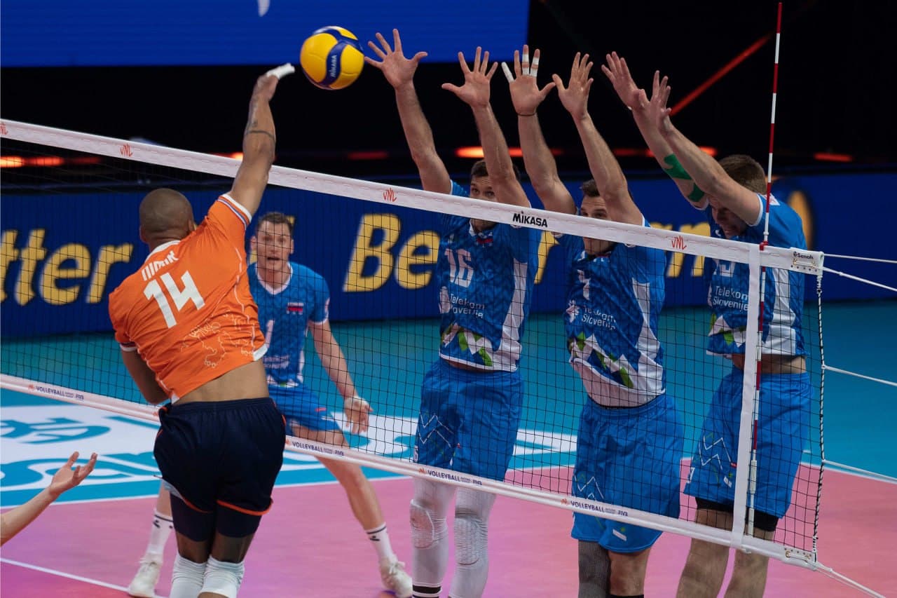 Slovenski strateg Alberto Giuliani se je odločil, da tekmo proti motiviranim Nizozemcem, ki so prve tri obračune v Ligi narodov izgubili, a so se zelo dobro upirali tako favoriziranim Rusom kot Japoncem in Irancem, začne v zasedbi Gregor Ropret, Tonček Štern, Jan Kozamernik, Alen Pajenk, Tine Urnaut, Rok Možič in Jani Kovačič. Po uvodni točki Slovencev so tekmeci povedli s 3:1, slovenska klop je reagirala z odmorom. Blok Možiča, napad Kozamernika in as Šterna so našo vrsto spet popeljali v vodstvo, do tehničnega odmora je prednost narasla na tri točke. A Nizozemci so se takoj približali, nato pa je na Urnautov začetni udarec in z zaključkoma Šterna in Možiča razlika spet narasla (14:10). Roberto Piazza je poizkusil s prekinitvijo, po novi točki Možiča za 16:11 je sledil še en odmor. Ropret je za 20:15 dobro našel Pajenka, nato pa prispeval še as. Naši odbojkarji so končnico niza odigrali zbrano. Potem ko je Jorna žogo poslal izven igrišča, so imeli pri 24:17 že prvo zaključno žogo, Možič je poskrbel za zmago s 25:18.