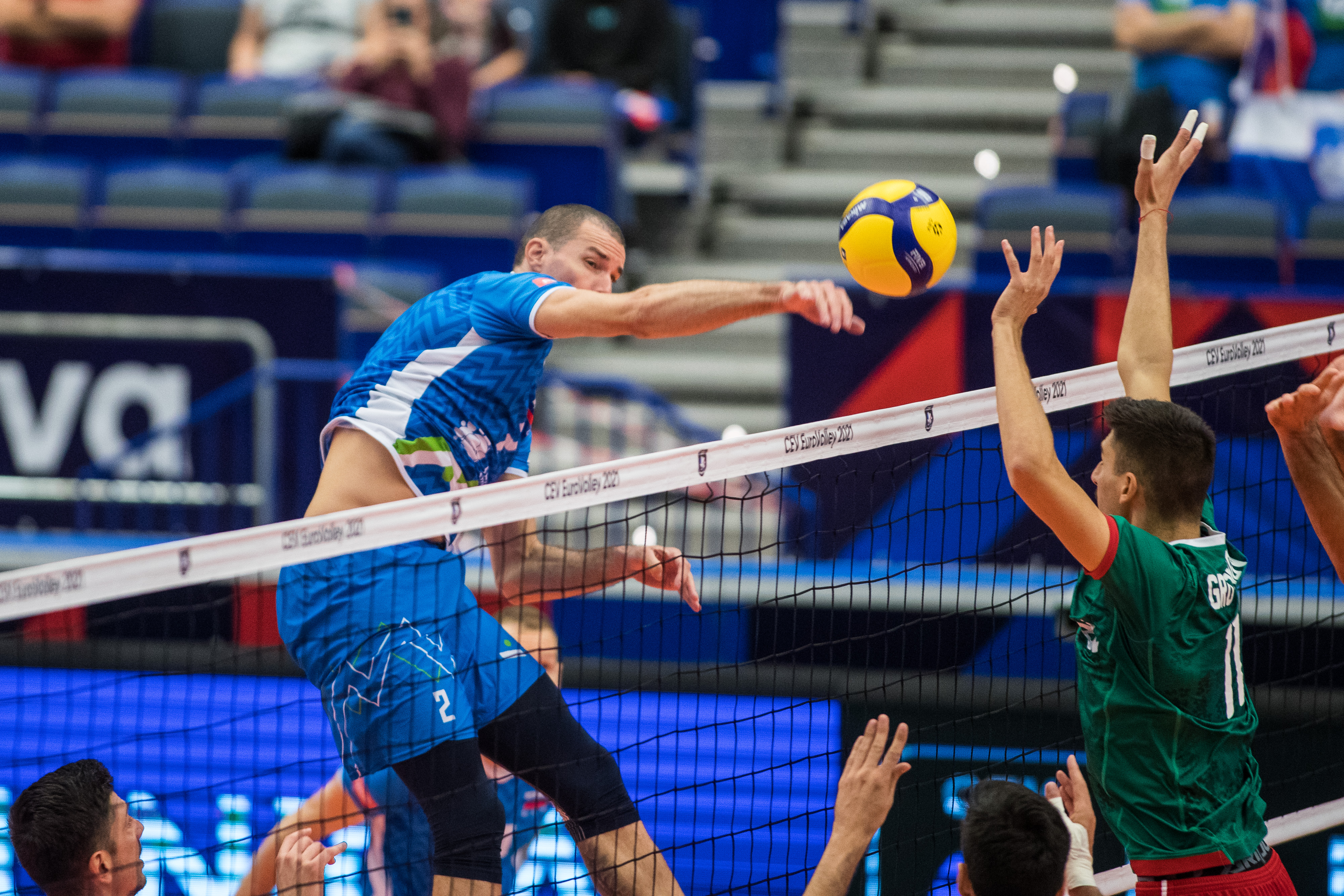 Slovenska izbrana vrsta je obračun z Bolgarijo začela s svojo udarno zasedbo, Alberto Giuliani je v igro poslal podajalca Dejana Vinčića, korektorja Tončka Šterna, srednja blokerja Alena Pajenka in Jana Kozamernika, sprejemalca Tineta Urnauta in Klemna Čebulja ter prostega igralca Janija Kovačiča.