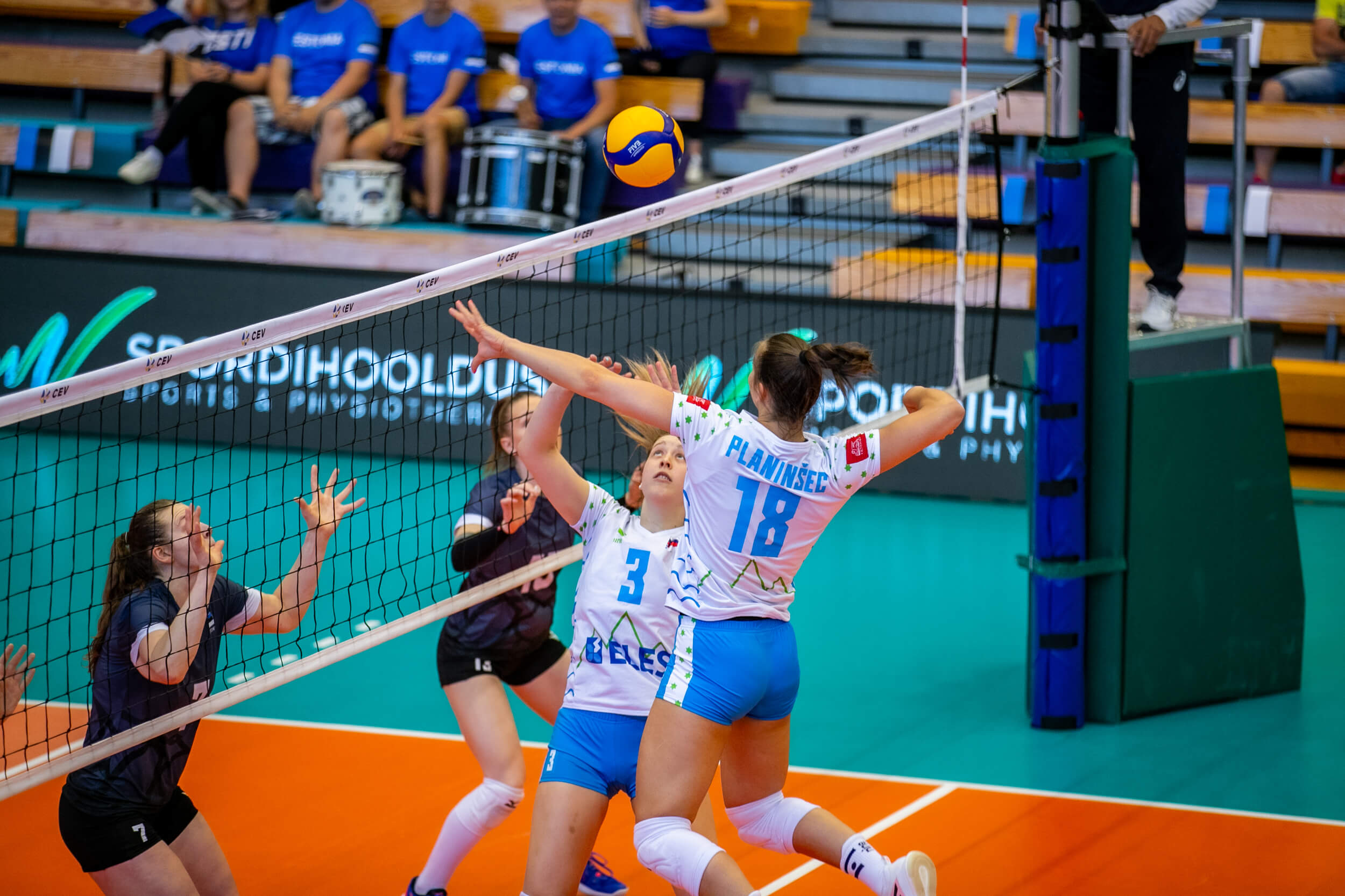 Obračun z Estonkami, ki so jih naša dekleta na prvi medsebojni tekmi v Mislinji premagala s 3:2, je italijanski strateg začel s podajalko Evo pogačar, na mesto korektorice je poslal Mašo Pucelj, kot sprejemalki sta priložnost dobili Eva Zatkovič in Mija Šiftar, kot srednji blokerki Saša Planinšec in Mirta Velikonja Grbac, na mestu proste igralke pa je na igrišče stopila Julija Grubišič Čabo.