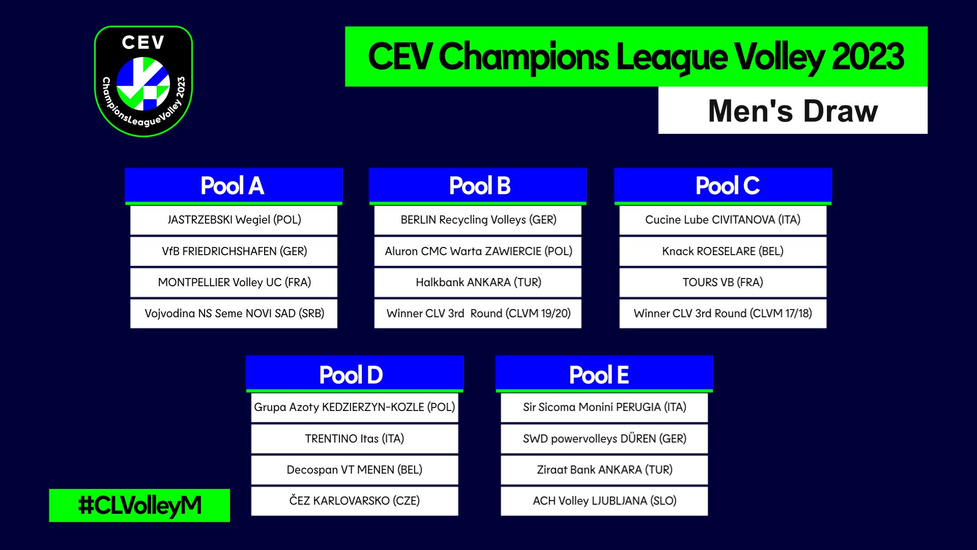 V Bruslju je potekal žreb Lige prvakov, v katero se po letu premora vračajo odbojkarji ACH Volleyja Ljubljana. Kroglice so določile, da se bodo Ljubljančani v skupinskem delu elitnega klubskega tekmovanja merili z ekipami iz Italije, Turčije in Nemčije.