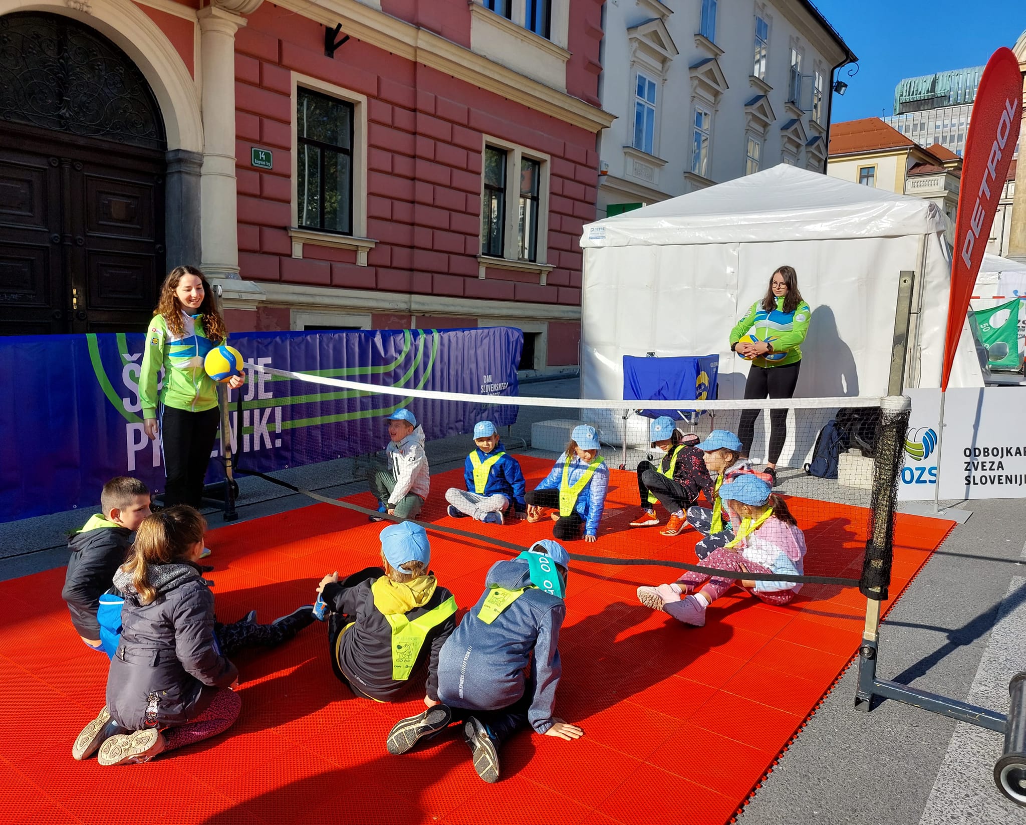 V soboto in nedeljo bi se moral na Kongresnem trgu odvijati še tradicionalni olimpijski festival, a so otroci ob športnih aktivnostih lahko uživali le v soboto, v nedeljo je bilo dogajanje zaradi dežja odpovedano. Udeleženci festivala so se v minulih letih lahko preizkusili v odbojkarskem izzivu, tokrat pa je Odbojkarska zveza Slovenije zanje pripravila drugačen izziv, odbojko sede. Otrokom in mladim so pri izvajanju izziva pomagali člani in članice slovenske reprezentance v odbojki sede, Lena Gabršček, Tija Vrhovnik, Klara Vrabič, Matjaž Majdič, Sebastjan Osrečki in Simon Turk, smeha in dobre volje pa tudi lepih odbojkarskih potez ni manjkalo.