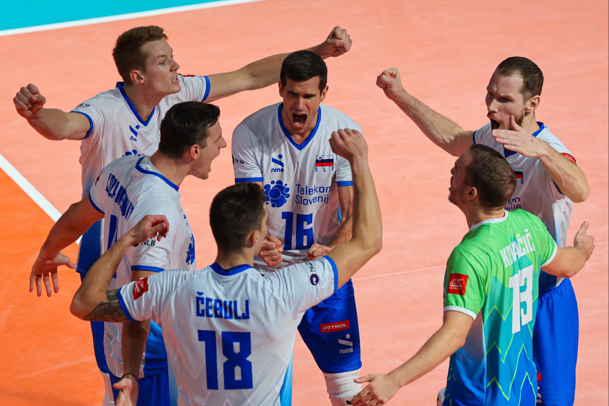 Kot je v Varni bilo že v navadi, se je slovenska izbrana vrsta v tekmo podala v najmočnejši zasedbi. Prvo postavo so sestavljali sprejemalci Tine Urnaut, Klemen Čebulj in Rok Možič, pri čemer je slednji zapolnil vrzel na korektorskem mestu, podajalec Gregor Ropret, srednja blokerja Jan Kozamernik in Alen Pajenk ter prosti igralec Jani Kovačič.