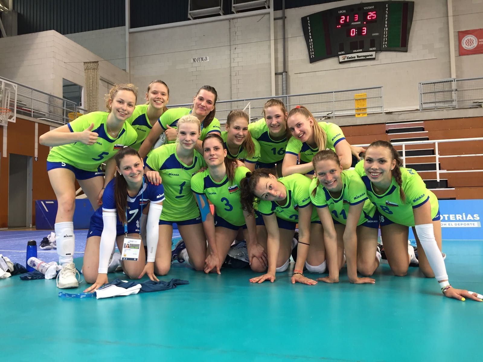 Selektor slovenske reprezentance Alessandro Chiappini je drugo tekmo v Tarragoni začel s skoraj enako postavo kot včerajšnjo proti Alžiriji, s podajalko Evo Mori, korektorico Izo Mlakar, sprejemalkama Ano Marijo Vovk in Pio Blažič (slednja je dobila prednost Žano Zdovc Sporer), srednjima blokerkama Tino Grudino in Sašo Planinšec ter prosto igralko Veroniko Mikl.