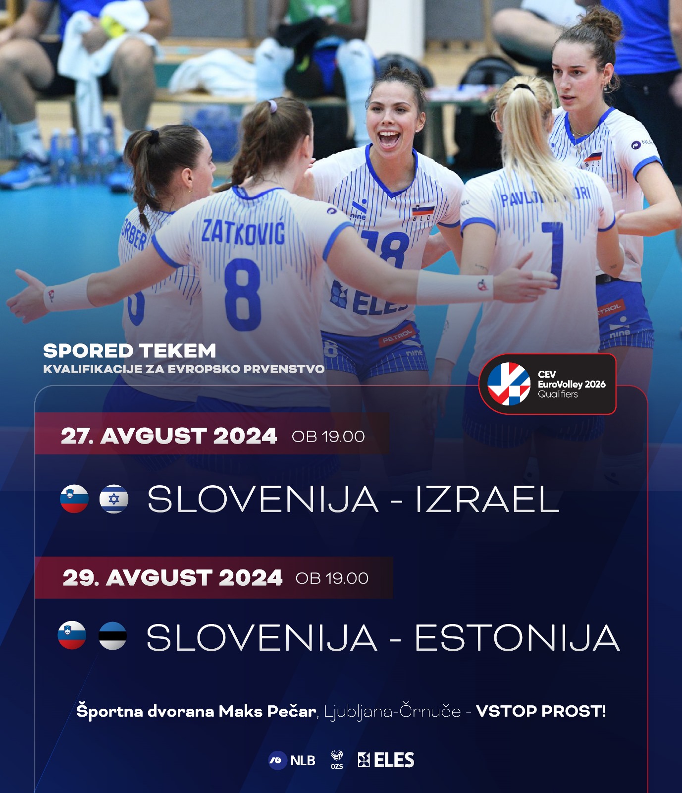 Slovenske odbojkarice so reprezentančno sezono začele z nastopi v Zlati evropski ligi, pred njimi pa je zdaj že nov izziv, kvalifikacije za EuroVolley, ki ga bodo leta 2026 skupaj gostili Azerbajdžan, Češka, Švedska in Turčija. V prvem delu kvalifikacij naša dekleta čakata dva obračuna, 27. avgusta bodo v Ljubljani gostile Izraelke, dva dni kasneje pa še Estonke.