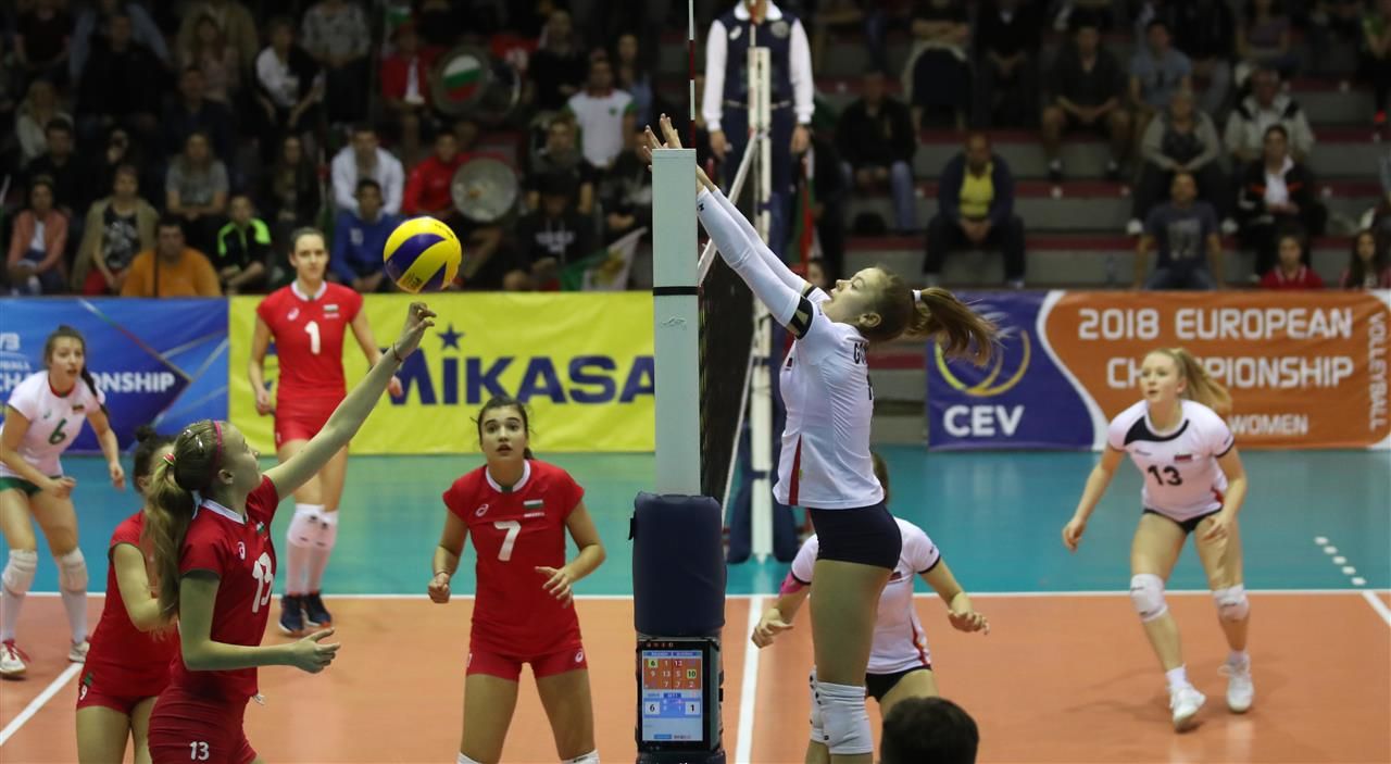 Tretja tekma evropskega prvenstva v Bolgariji je potekala v nabito polni dvorani, ob glasnih bolgarskih navijačih je bilo precej bučno tudi na slovenskem delu tribune. Gostiteljice prvenstva so srečanje začele zelo agresivno na začetnem udarcu in našim povzročale nemalo težav pri sprejemu. Hitro so povedle z 9:1, niz pa je z uspešnim sprejemom in napadom prekinila Vita Črnila in soigralke vrnila v igro. Slovenke so dosegle šest zaporednih točk in se približale na 9:7. Na 11. točki je Ana Žigon z varanjem poskrbela za izenačenje, dva asa Neli Goršek pa sta naša dekleta popeljala v vodstvo. Po asu Špoljaričeve so naše odbojkarice ušle že za tri točke (16:13). Slovenke so z dobrimi servisi tekmice oddaljile od mreže, odlično sta začela delovati tudi blok in obramba, naše so povedle z 19:14. V nadaljevanju so se tekmice približale na 20:17, slovenski strateg Boris Klokočovnik pa se je odločil za prekinitev. Naša dekleta so še naprej dobro igrala v bloku in Črnila je prav s tem elementom naše popeljala v vodstvo 22:17. Do konca niza Slovenke niso popuščale in ga dobile z rezultatom 25:18.