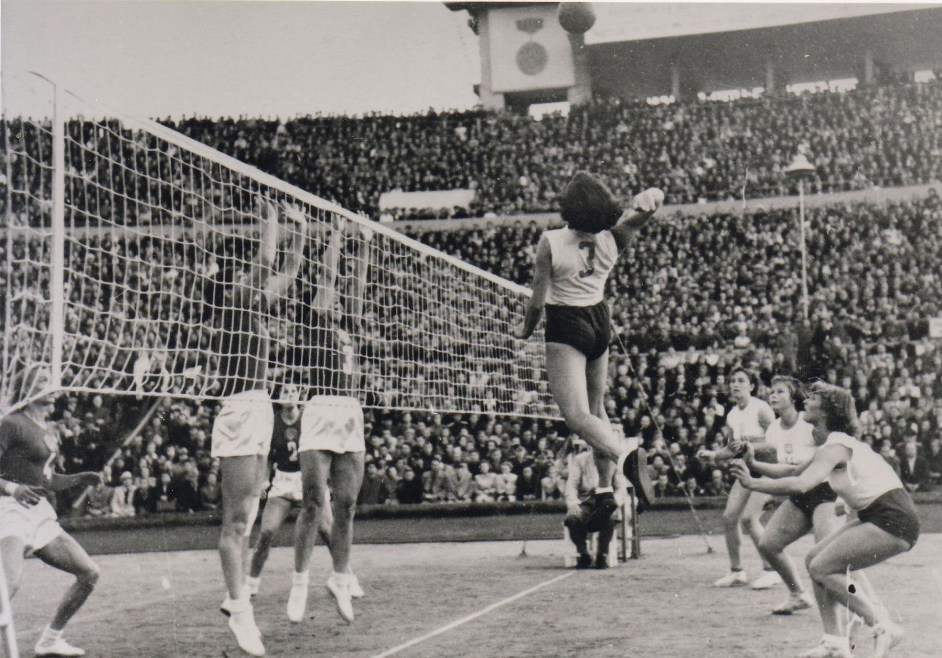Za uradni datum začetka mednarodnih tekmovanj v odbojki sicer štejemo športne igre Daljnega vzhoda leta 1913 v Manili. Prva leta sta v odbojki prevladovali Rusija in Češkoslovaška. Prvo evropsko prvenstvo v odbojki je bilo leta 1948 v Rimu in prvo svetovno prvenstvo v odbojki za moške leta 1949 v Pragi. Leta 1952 se je odvilo tudi prvo žensko svetovno prvenstvo v Moskvi, kjer je prav tako dominirala Rusija in svojo prevlado nad ostalimi državami ohranjala celo desetletje. Leta 1957 so odbojko uvrstili tudi v program olimpijskih iger, prvič pa so jo igrali na olimpijskih igrah v Tokiu leta 1964.